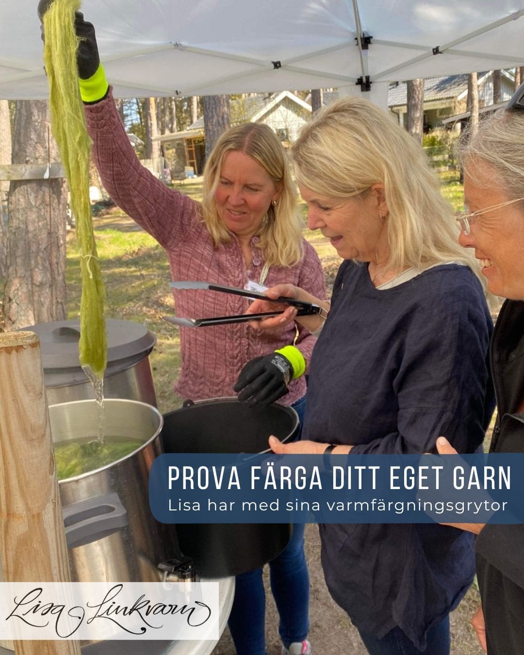 Garnbilen är med så det finns möjlighet att klappa och köpa garn, men också att prova på både varm- och kallfärgning av garn och även tuftning.